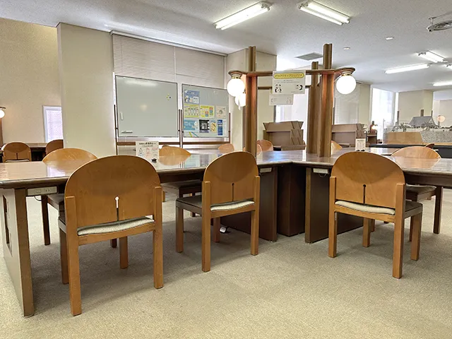 ◆ 図書館 2F(十字テーブル/国道側カウンター/グループ学習室)