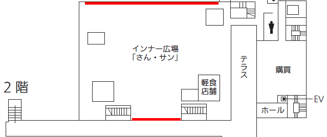 | C | パレット ゾーン | B1F 2F | インフォメーションラウンジ インナー広場「サン・さん」 | 30 36 |