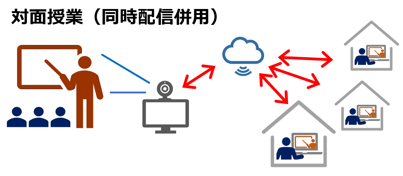 教室での対面授業を「Teams」等のオンライン会議を使用して配信します