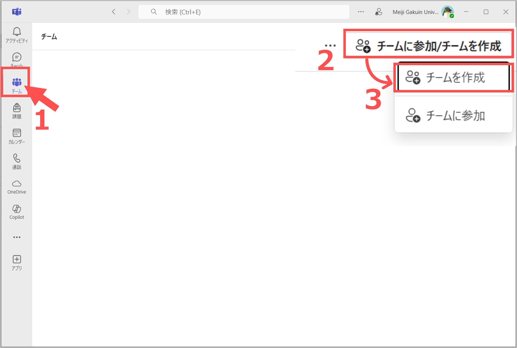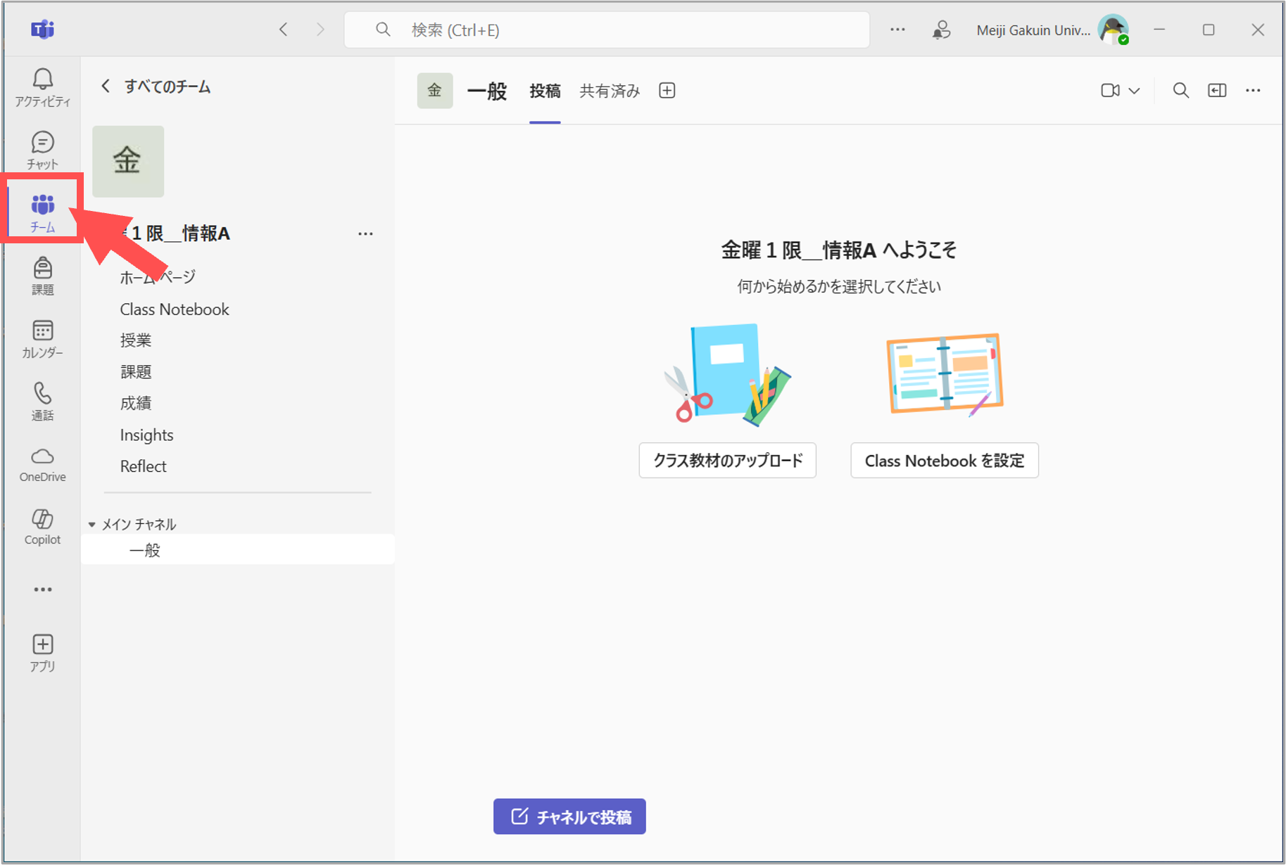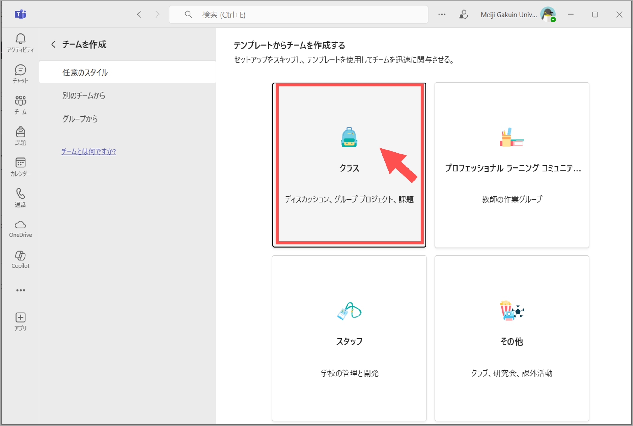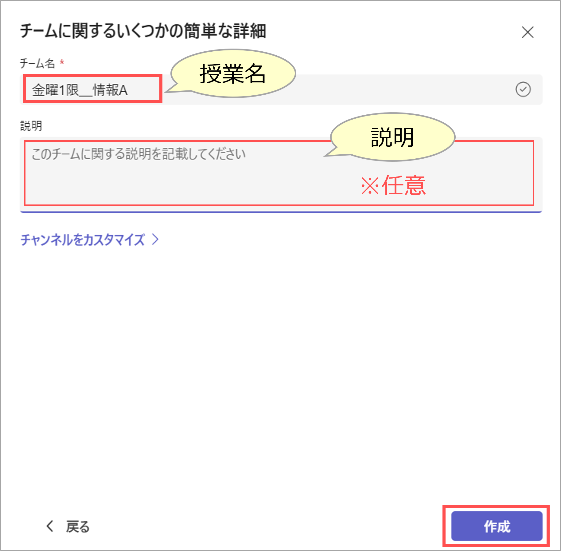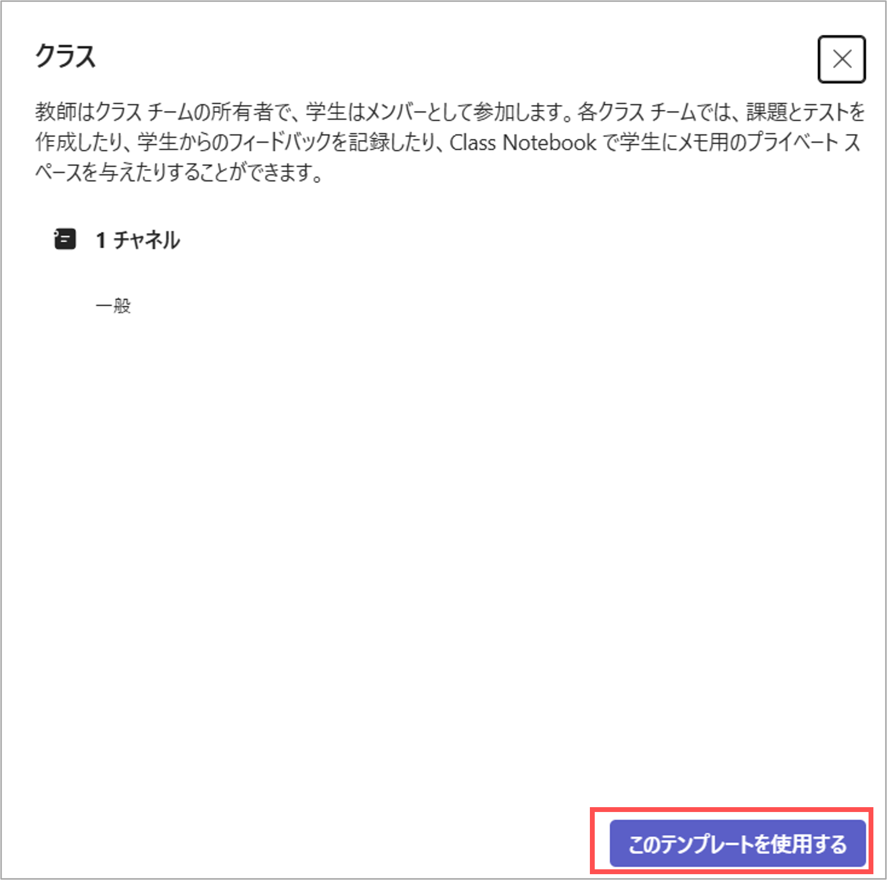 ※一般的な【チーム】の作成は、▶「チームを作成する(授業用以外)」参照