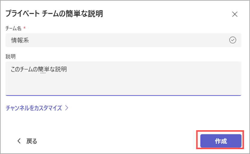 ※授業用の【クラス】の作成は、▶「チームを作成する(授業用:クラス)」参照