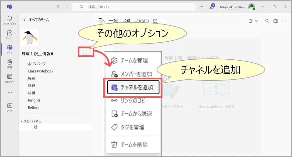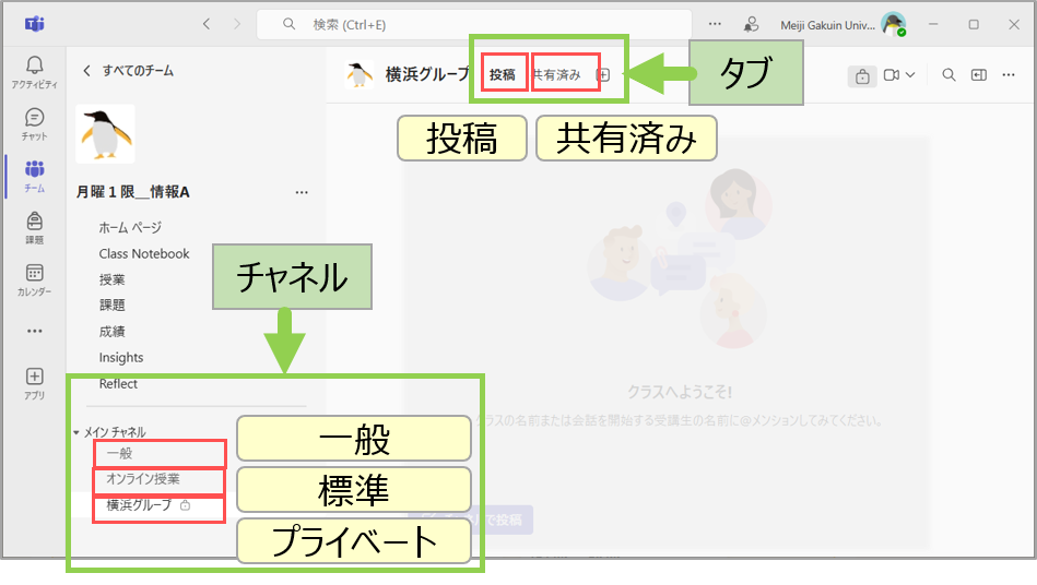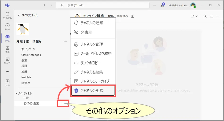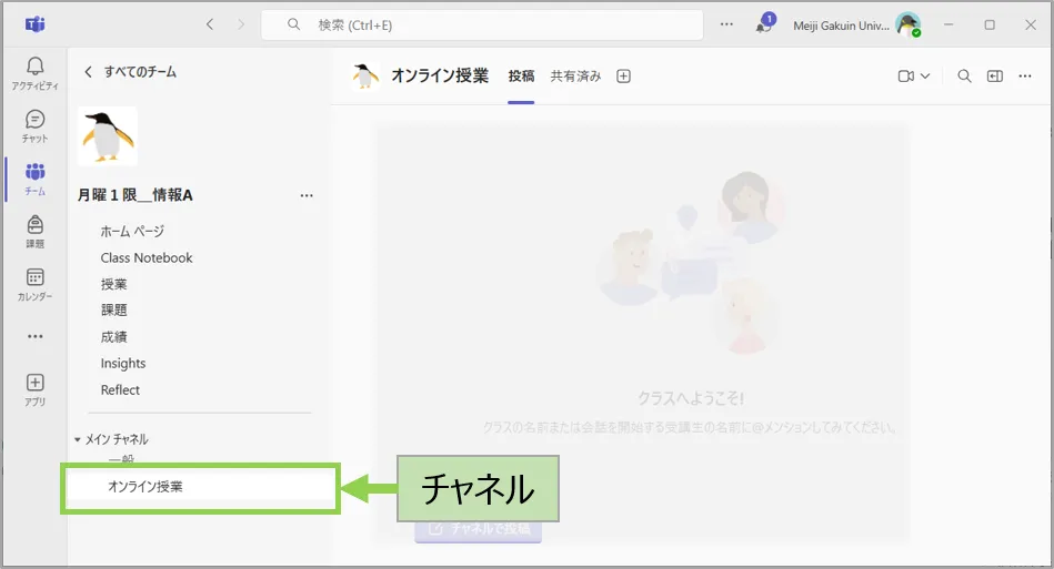 - なお、オンライン授業には、専用のチャネルの作成を推奨しています。