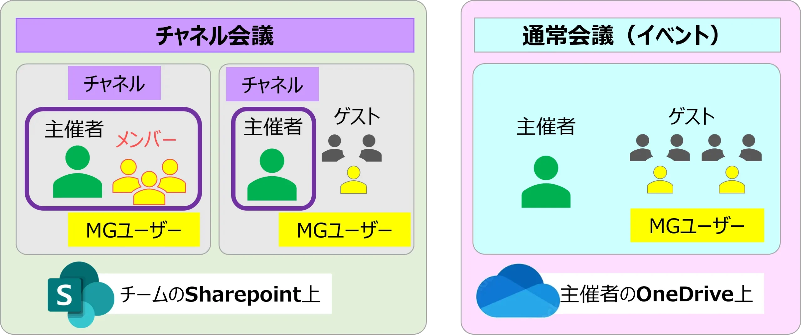 | 会議チャットの格納場所 | チームのチャネル | 個人のOneDrive内「チャットファイル」※ |