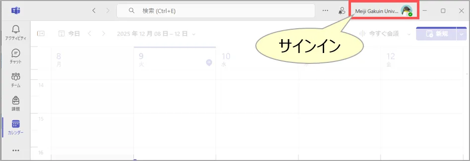 本学のMGアカウントでサインインしている状態のことで、チームのメンバーに限定されません。