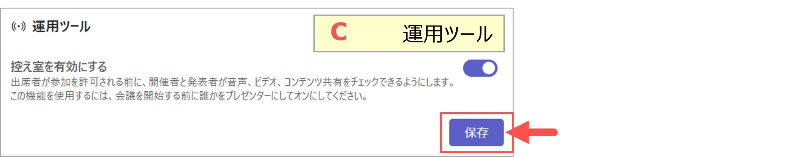 - 状況 : A.新規予約時に設定 / B.既存の予約を編集 / C.会議中