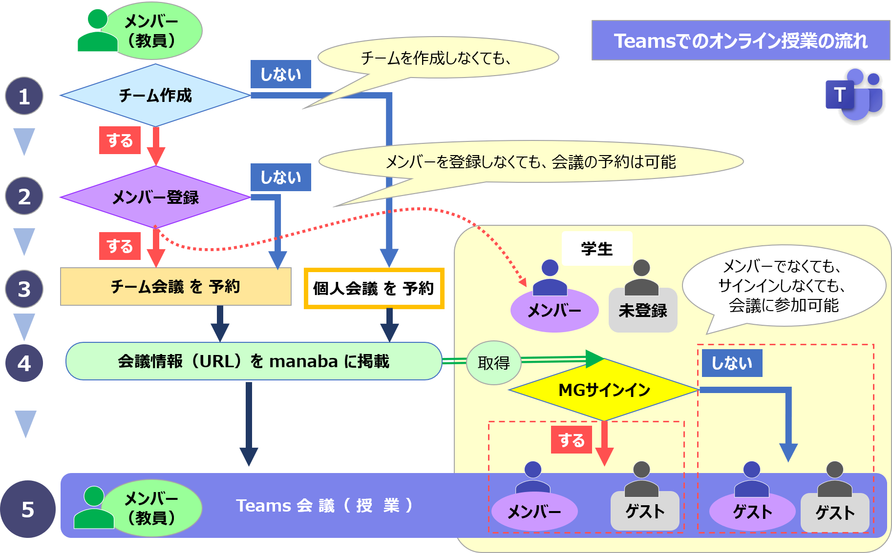 • 学生の利用に際しては、MAINアカウントでのサインインが前提ですが、サインインをしなくてもゲストとして会議に参加することができます。
