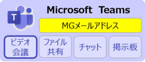 • 本学の Microsoft アカウント(MGメールアドレス)でサインインすることにより、本学の組織(meijigakuin.ac.jp)での Teams を利用するできます。