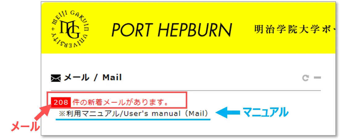 - 「〇件の新着メールがあります」をクリック
