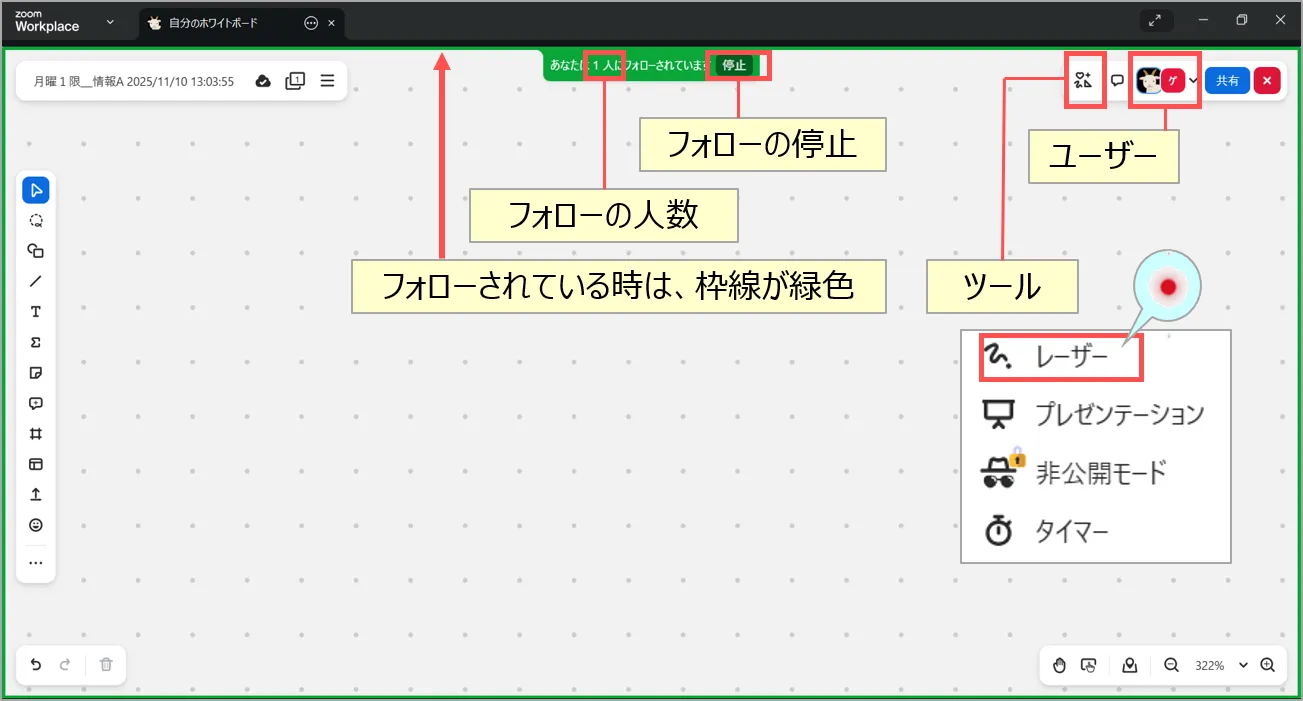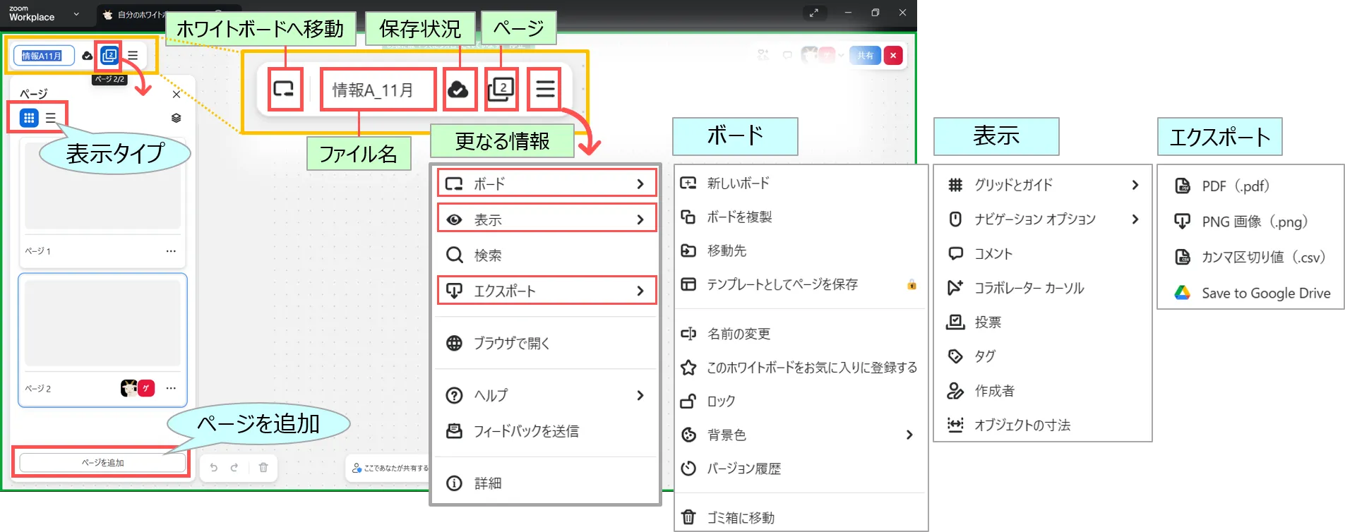 - ミーティンング内で作成したボードの確認や編集ができます。