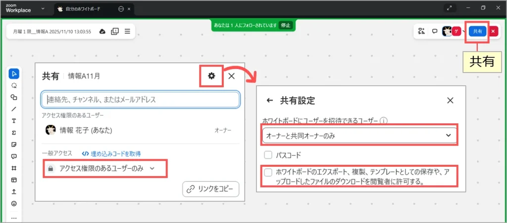 | 参加者の権限 | 閲覧のみ | 編集可 |