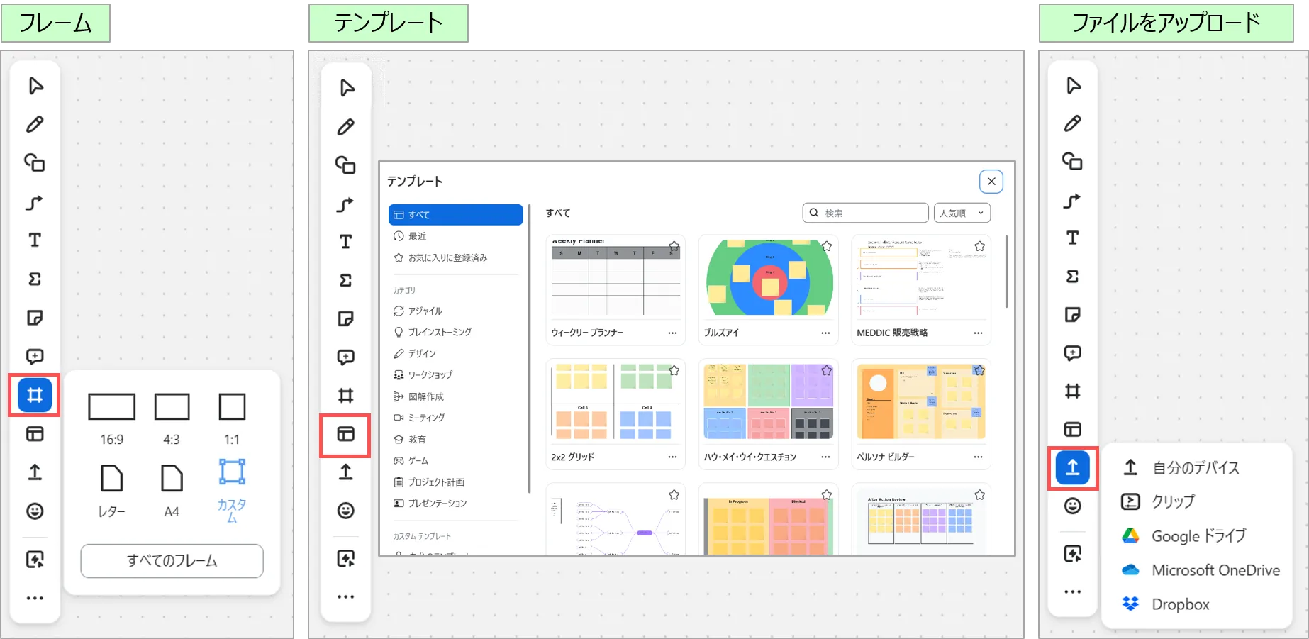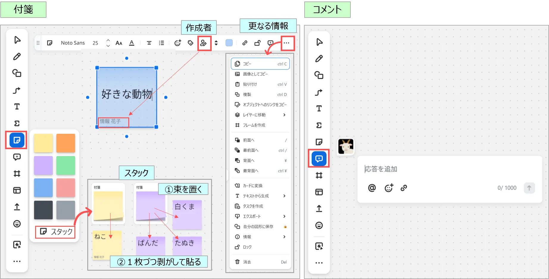 - アクティブラーニングにも有効な、付箋や様々なテンプレートも用意されています。