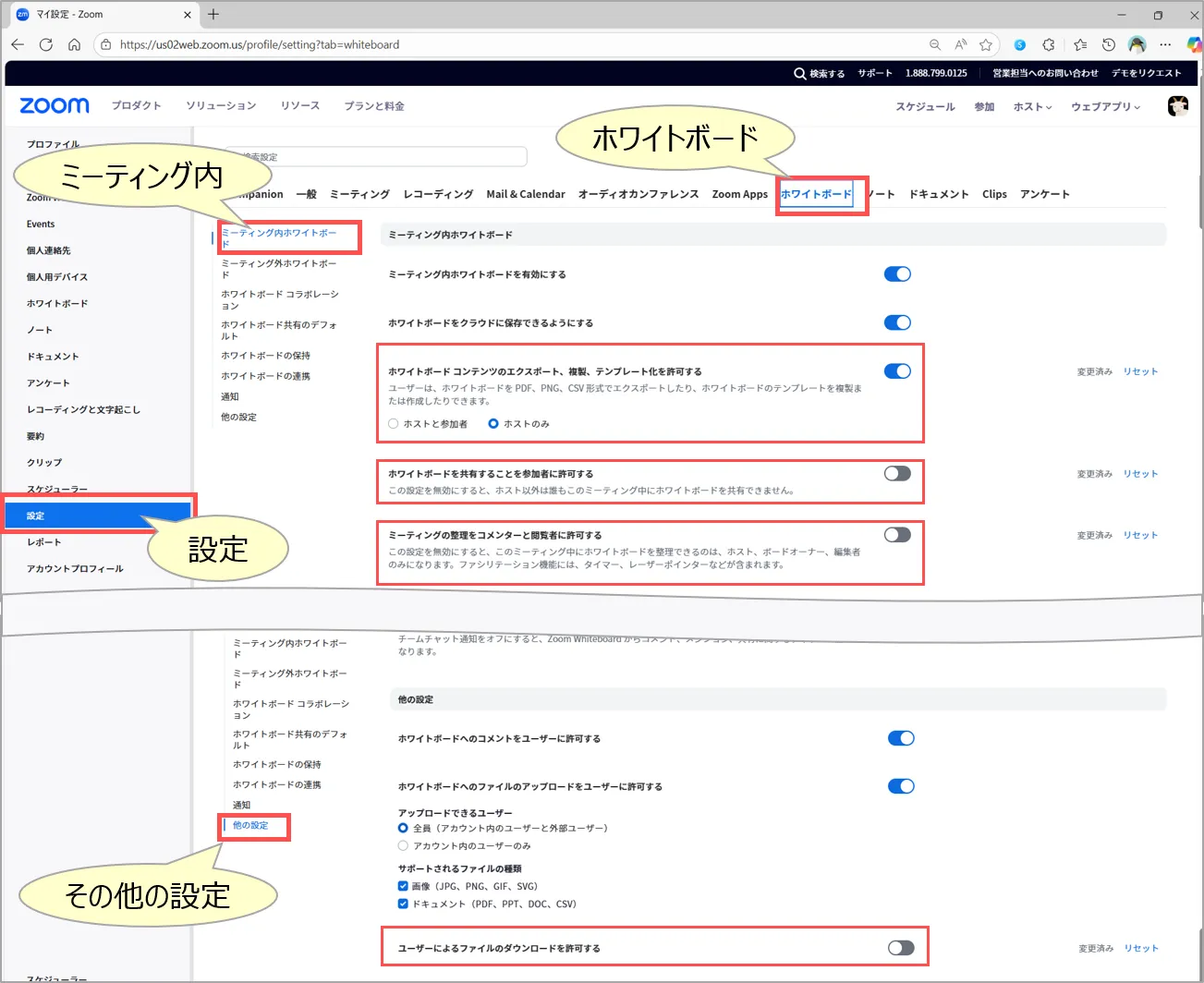 - 設定の変更は、新規のホワイトボードのデフォルトになります。