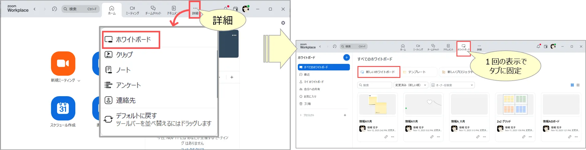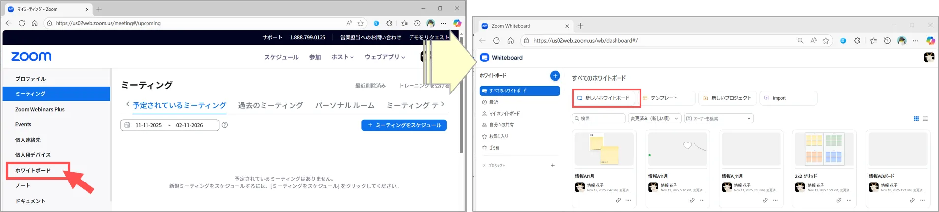 - 事前にZoomマイページ上にボードを作成しておくことができます。