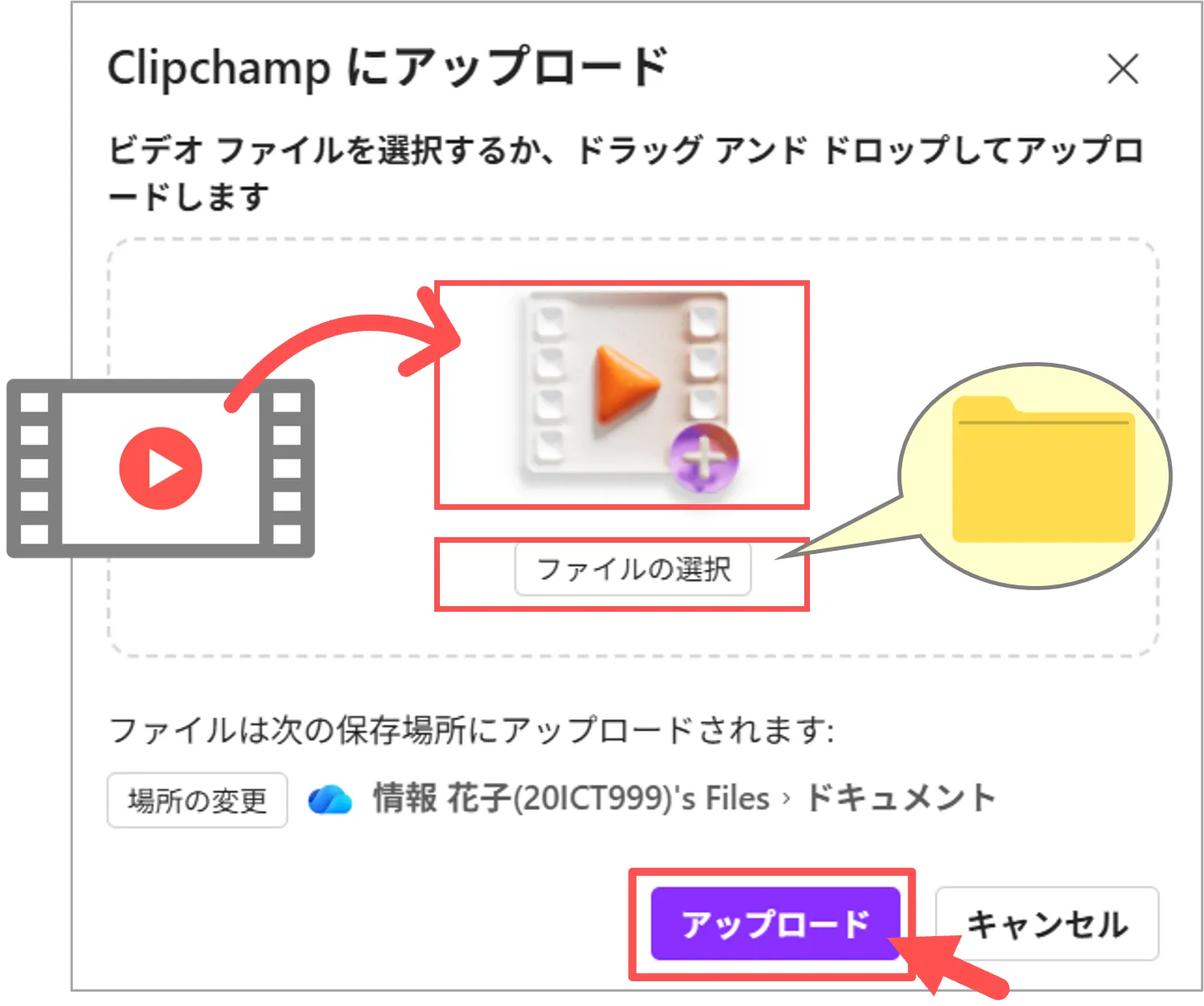 3.「ファイルの選択」をクリックし、対象の動画を選択するか、