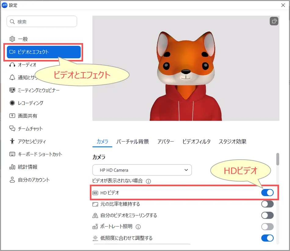 - HD画質の録画には、条件があります。 ▶「レコーディングしたビデオの解像度」Zoom公式参照