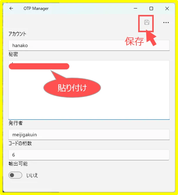 【秘密鍵】を【OTP Manager】に設定