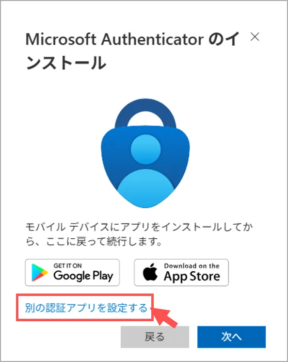 1.「Microsoft Authenticatorアプリを現在使用できません」をクリック