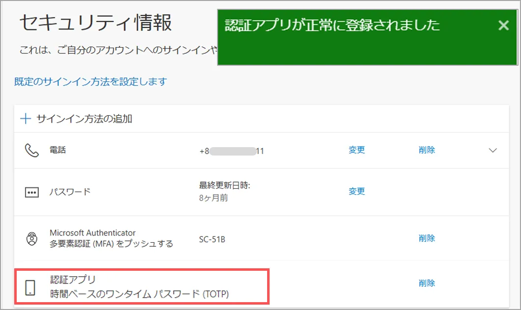 - OTP ManagerをMAINアカウントの「セキュリティ情報」に登録することにより、多要素認証に使用できます。