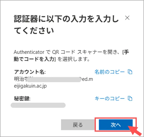 ■ パソコンのブラウザで、「セキュリティ情報」を開き【秘密鍵】を入手