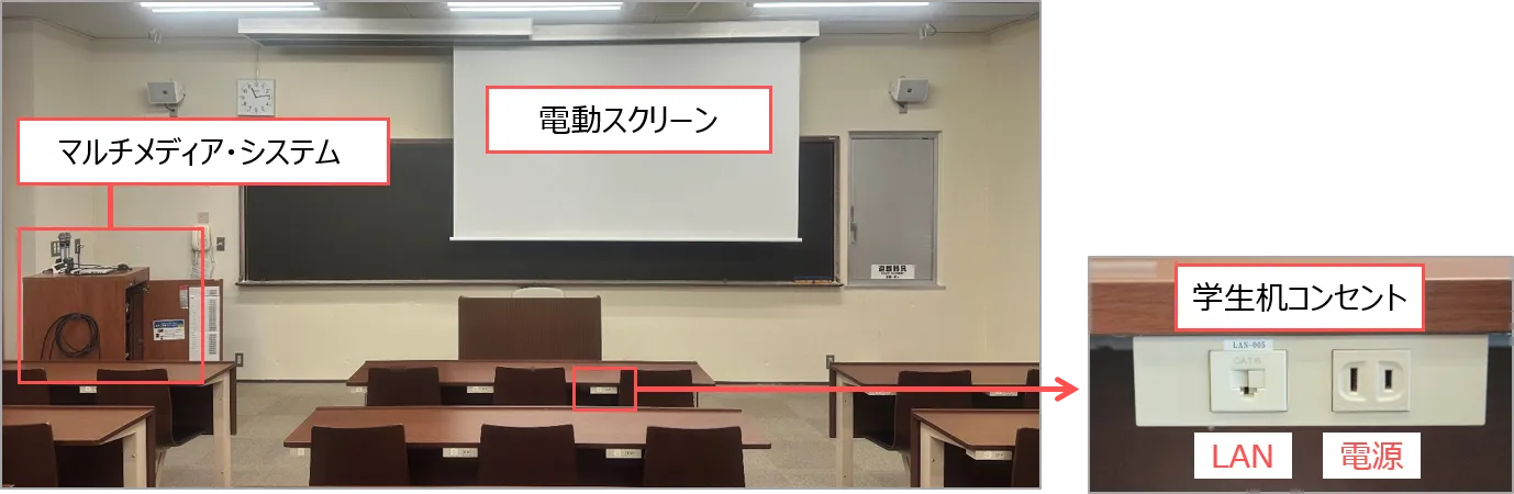 | 教室 / 設備 | 学内設備の利用方法 運用関係 | 学内 Wi-Fi について など 貸出設備・機器について ※借用申請 オンライン授業について など |