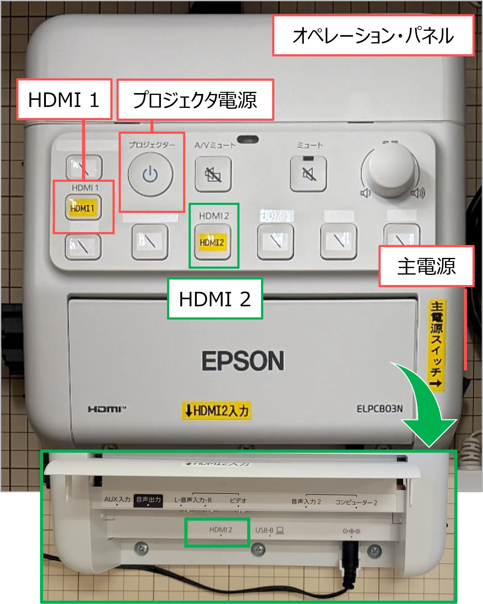 - 【HDMI2】ボタンを押す