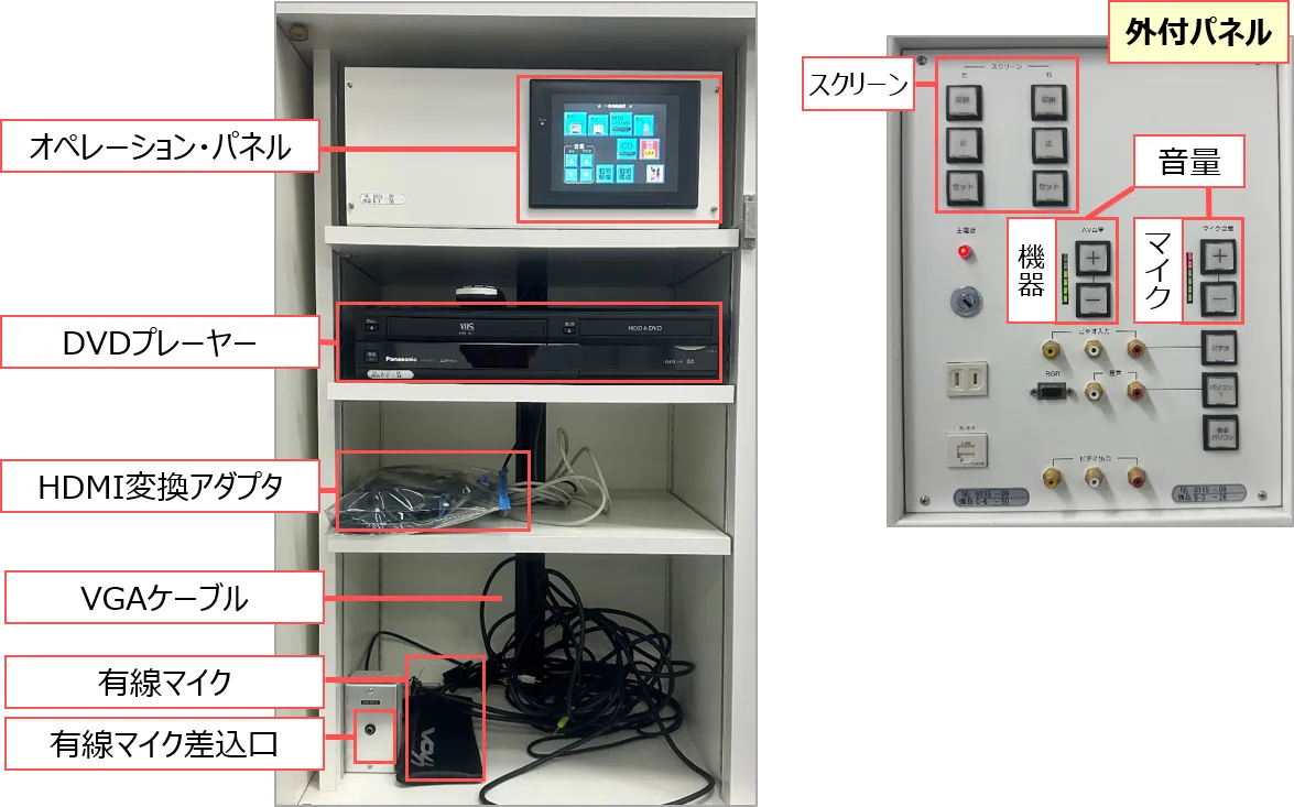 | マニュアル | マニュアル(教室/設備) | PC画面の投影方法 DVDについて など |