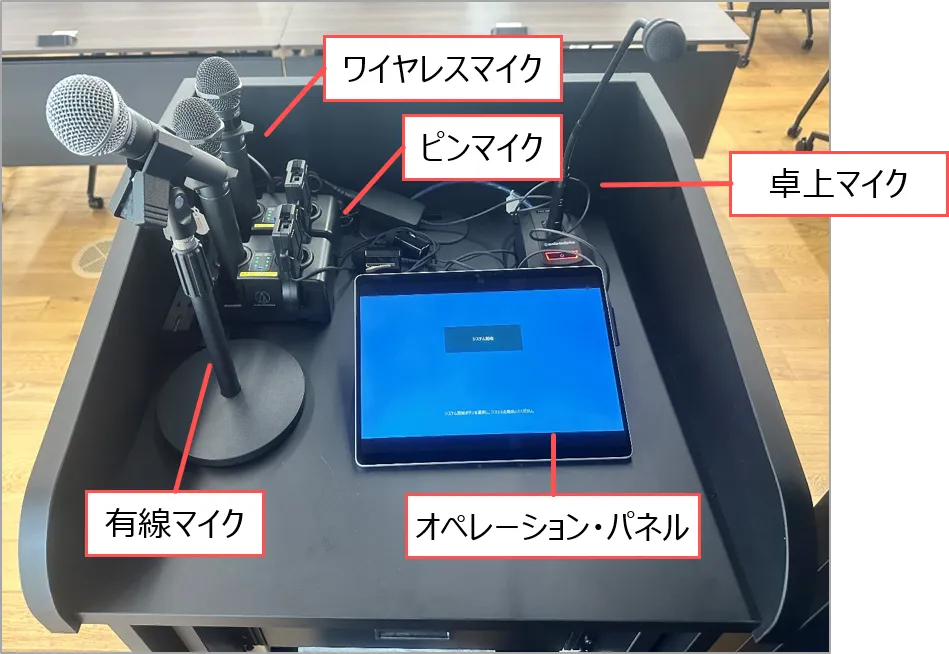常設マイク | 有線マイク差込口 | オンライン用設備 |